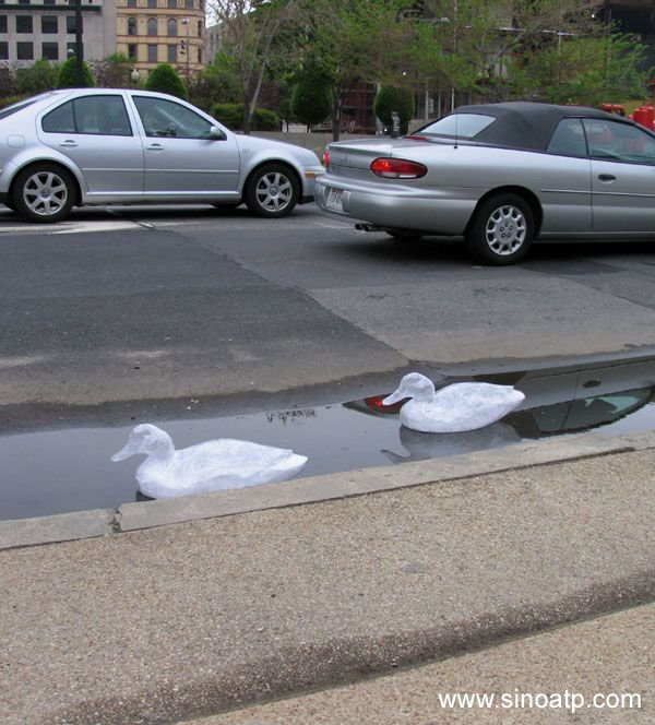 ![]() 透明膠帶創(chuàng)意花樣:游水的兩只鴨子 |